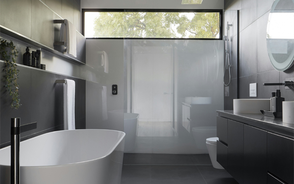 Zero-threshold entry. No step-over, no slip risk. Spa-like design with linear drain.